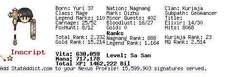 Date Vita Increase Vita Experience Mana Increase Mana Experience Total Experience
